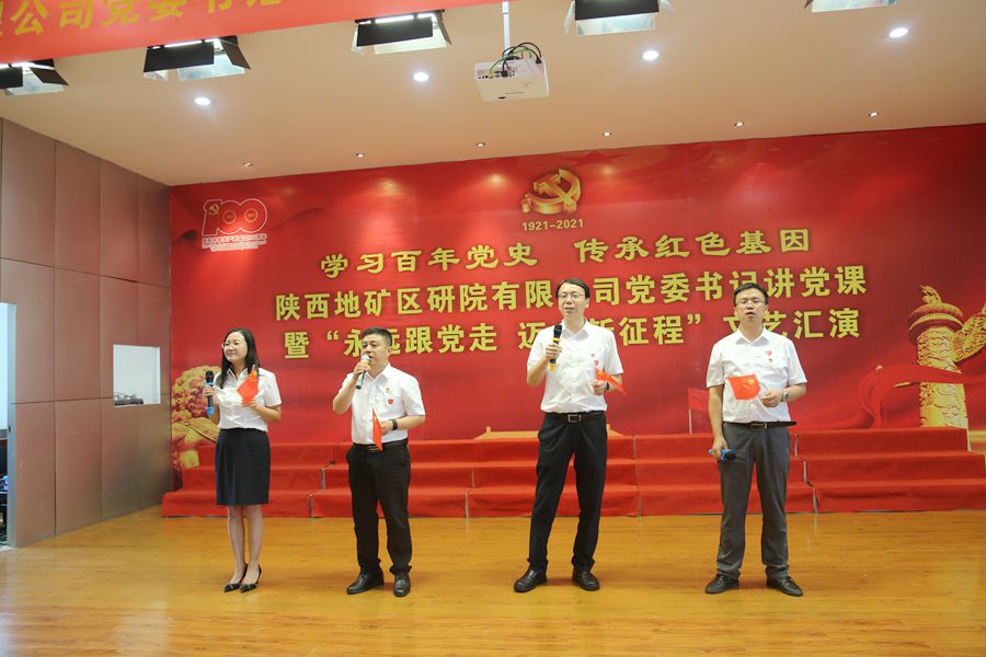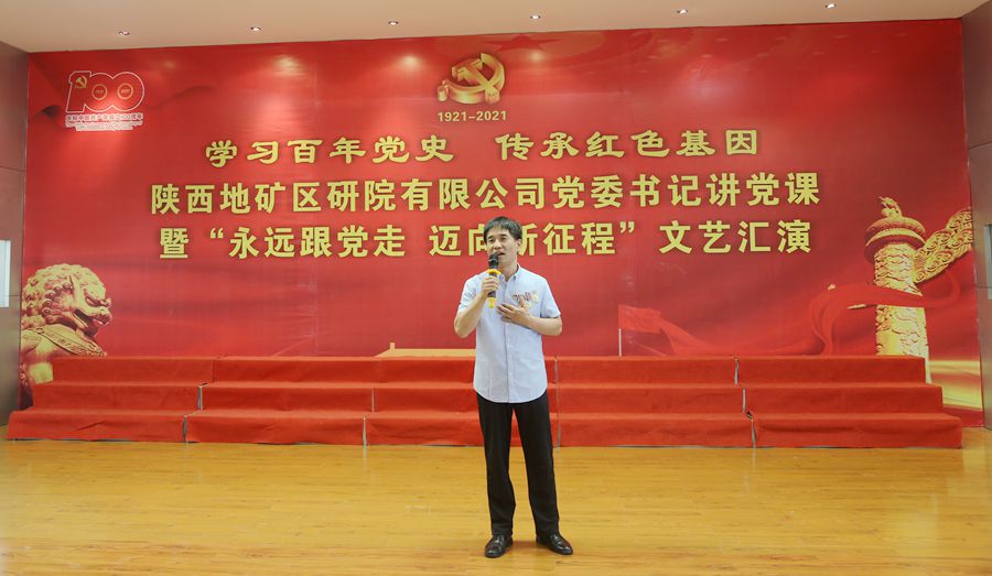 7月1日下午,陜西地礦區(qū)研院有限公司舉辦慶祝中國共產(chǎn)黨成立100周年黨委書記講黨課暨“永遠跟黨走 邁向新征程”文藝匯演活動。活動由公司黨委副書記劉玉梅主持,公司全體干部職工參加。