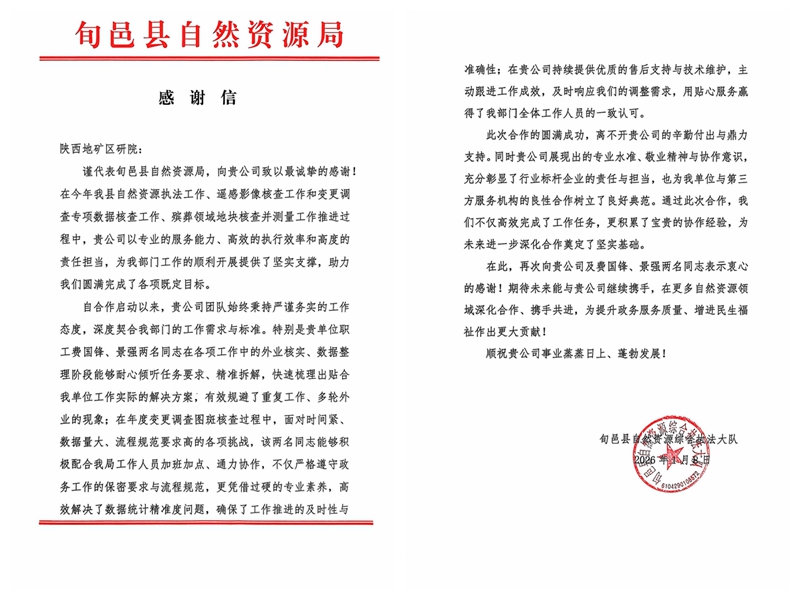 春山在望,未來可期。這些感謝信不僅是對過往合作的肯定,更是對未來攜手共護自然資源的期許。未來,3S國土勘測規劃事業部將持續深化與自然資源系統各單位的合作,以“勇擔使命、精準服務”為導向,攜手守護綠水青山,推進人與自然和諧共生,為社會經濟高質量發展注入國企動能。
