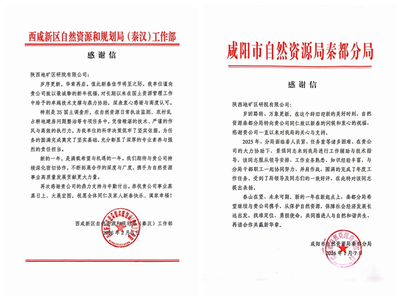 新春將至,3S國土勘測規劃事業部收到西安、咸陽、西咸新區等多家自然資源和規劃部門的感謝信,對事業部過去一年在自然資源領域給予的專業支持與卓越貢獻表達誠摯謝意,也彰顯了事業部與自然資源和規劃部門攜手共進、協作共贏的深厚合作情誼。