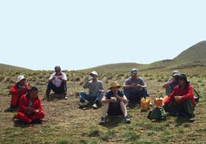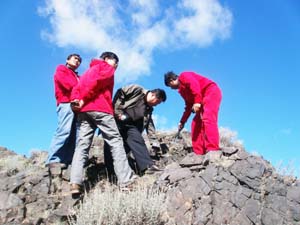 看,這里有金子。 檢查組與年輕的項目負責和技術負責在海拔4500米處