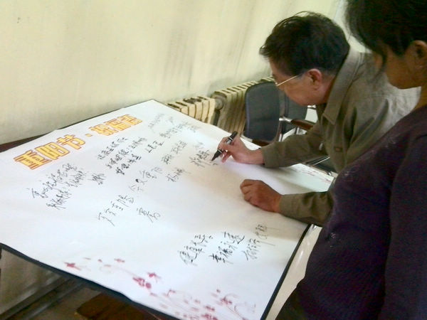重陽節祝福語簽名活動現場