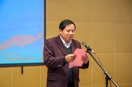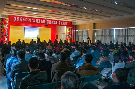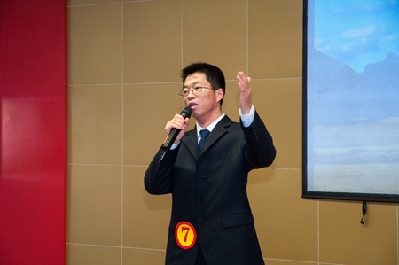 開場前,院長邢憲龍發表了熱映洋溢的元旦致辭,黨委書記宋化清宣讀了比賽評分辦法。在院工會精心策劃、組織協調、指導幫助下,13份原創稿件、13名選手精彩呈現,從愛崗敬業、工作感悟、精神傳承、工作見聞等不同角度、不同層面,抒發了對單位的真摯情感、對事業的執著追求及對美好明天的展望,充分展現了區研院干部職工無私奉獻、銳意進取的崇高品質和精神風貌。選手們以豐富的肢體語言、真摯的情感,聲情并茂地詮示了區研院的企業精神,或從容淡定、或慷慨激昂、或大方得體,個個意氣風發,英姿颯爽,充滿正能量的演講贏得了現場評委和觀眾們陣陣掌聲和贊嘆聲。演講活動中,精彩紛呈的文藝節目充分活躍了現場氣氛,恰當地將整個比賽的“正能量”、“區調精神”進一步烘托與升華,相得益彰,產生了良好的視聽效果,觸動了每位觀眾的心靈。武國柱老師也受邀擔當了評委,他感嘆地說,“在社會經濟低迷的大背景下,區研院能形成如此氣候,實屬不易!”。區研院職工同志們也紛紛表示,“本次比賽很受觸動和鼓舞!”