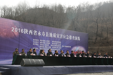 2月23日 ,我院院長邢憲龍帶領咸陽支隊參加了陜西地礦總公司、咸陽市國土資源局主辦的地質災害應急搶險演練,本次演練共有13家兄弟單位參演、觀摩,我院作為主要承辦單位,院領導高度重視,多次開會研究部署相關事宜,并赴實地查看現場。
