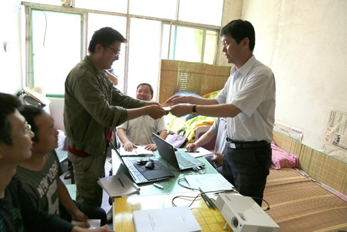 趙廷周對項目取得的成果表示肯定。當得知項目部的9名成員有5名是工程師時,他說,早陽—茨溝金礦預查項目取得了重大找礦成果,得到了省上有關部門的認可,為下一步爭取省基金項目打下了基礎。在出成果的同時要早出人才,多出人才,這也符合集團公司的核心價值觀,就是讓每一位員工得到全面發展。你們就像找到的金礦一樣含金量很高,通過項目的實施提升業務水平和綜合能力,實現自我價值,成為區研院找礦的中堅力量。我代表集團公司黨委向你們表示慰問。他同時送上了慰問金。