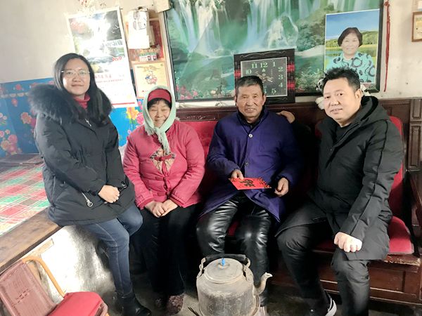 2020年1月14日,陜西地礦區研院有限公司黨委書記、執行董事邢憲龍、黨委副書記劉玉梅一行冒著三九嚴寒趕赴天度慰問結對幫扶對象蔡小林,在蔡小林家,邢書記祥細詢問了過去一年家庭收入情況,來年新規劃,鼓勵其樹立信心利用好政策,把日子過的紅紅紅火火,并預祝新年快樂。