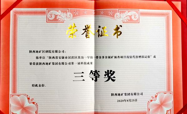 經集團公司科技委組織評選,從推薦的30個科技項目中評選出一等獎2項、二等獎3項、三等獎6項,我公司推薦的《鄂爾多斯盆地西南部油頁巖成礦地質條件和成礦潛力研究項目》(省基金科研項目)榮獲陜西地礦集團第一屆科技成果二等獎,《陜西省安康市漢濱區茨溝—早陽一帶金多金屬礦預查項目淺鉆代替槽探試驗項目》(集團公司科研項目)榮獲陜西地礦集團第一屆科技成果三等獎。(王小剛)